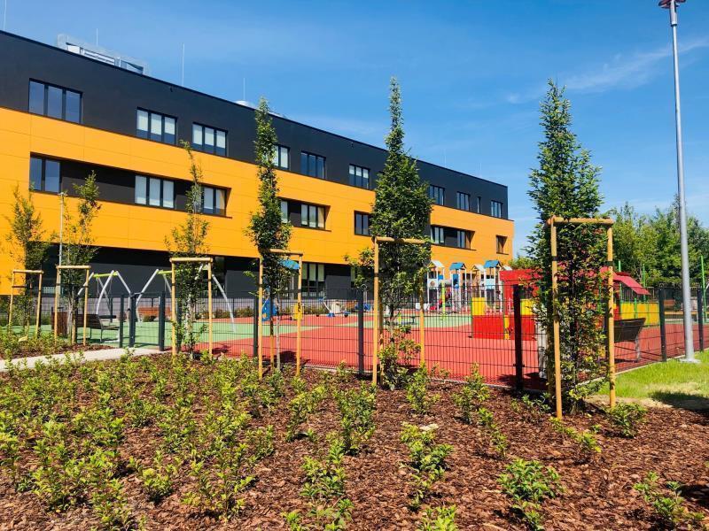 Ogród Pełen Przygód: Dwa bezpieczne place zabaw, ścieżka sensoryczna, boiska oraz zadaszona altana.